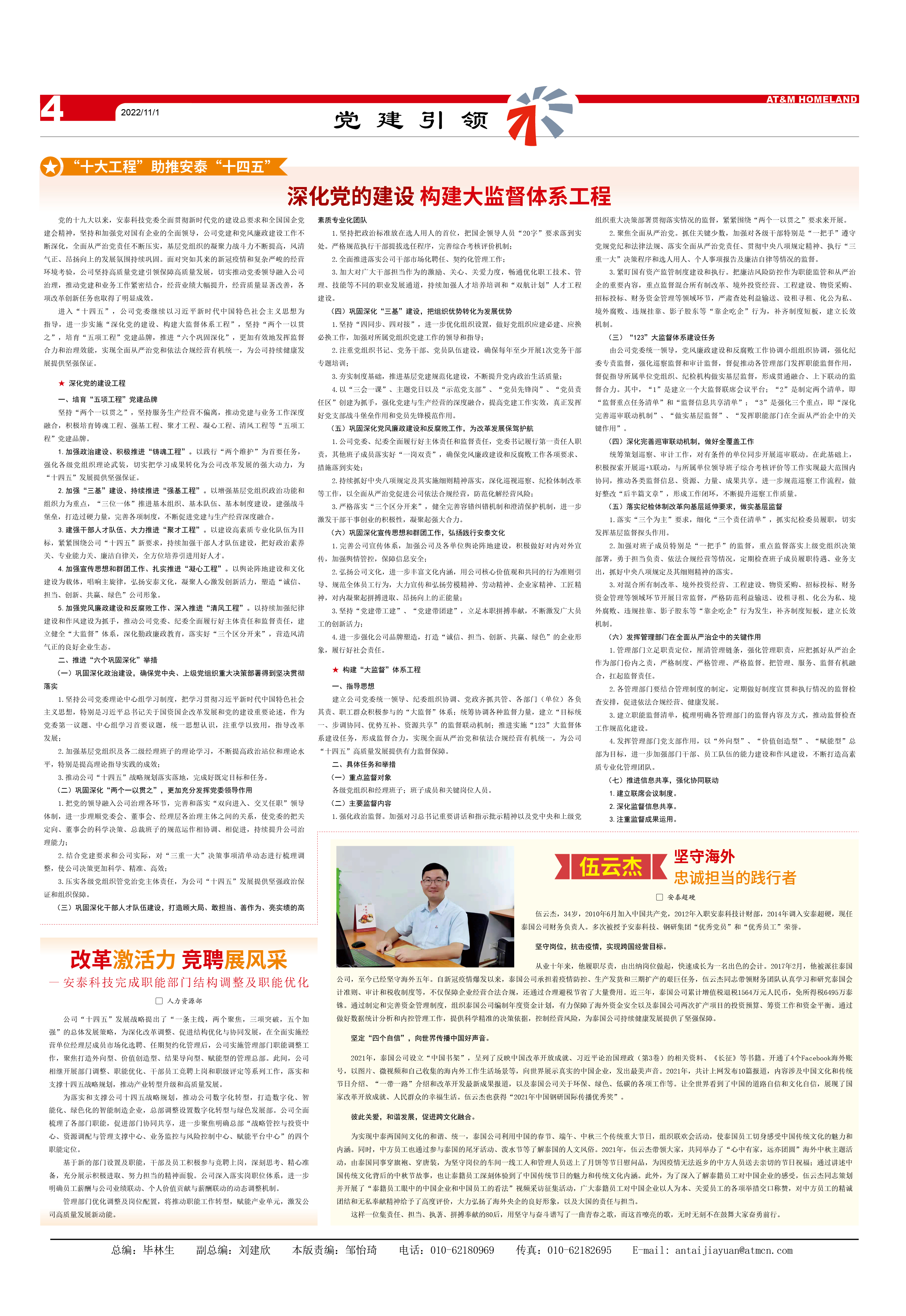 黨的十九大以來,安泰科技黨委全面貫徹新時代黨的建設(shè)總要求和全國國企黨建會精神,堅持和加強黨對國有企業(yè)的全面領(lǐng)導(dǎo),公司黨建和黨風(fēng)廉政建設(shè)工作不斷深化,全面從嚴治黨責任不斷壓實,基層黨組織的凝聚力戰(zhàn)斗力不斷提高,風(fēng)清氣正、昂揚向上的發(fā)展氛圍持續(xù)鞏固。面對突如其來的新冠疫情和復(fù)雜嚴峻的經(jīng)營環(huán)境考驗,公司堅持高質(zhì)量黨建引領(lǐng)保障高質(zhì)量發(fā)展,切實推動黨委領(lǐng)導(dǎo)融入公司治理,推動黨建和業(yè)務(wù)工作緊密結(jié)合,經(jīng)營業(yè)績大幅提升,經(jīng)營質(zhì)量顯著改善,各項改革創(chuàng)新任務(wù)也取得了明顯成效。