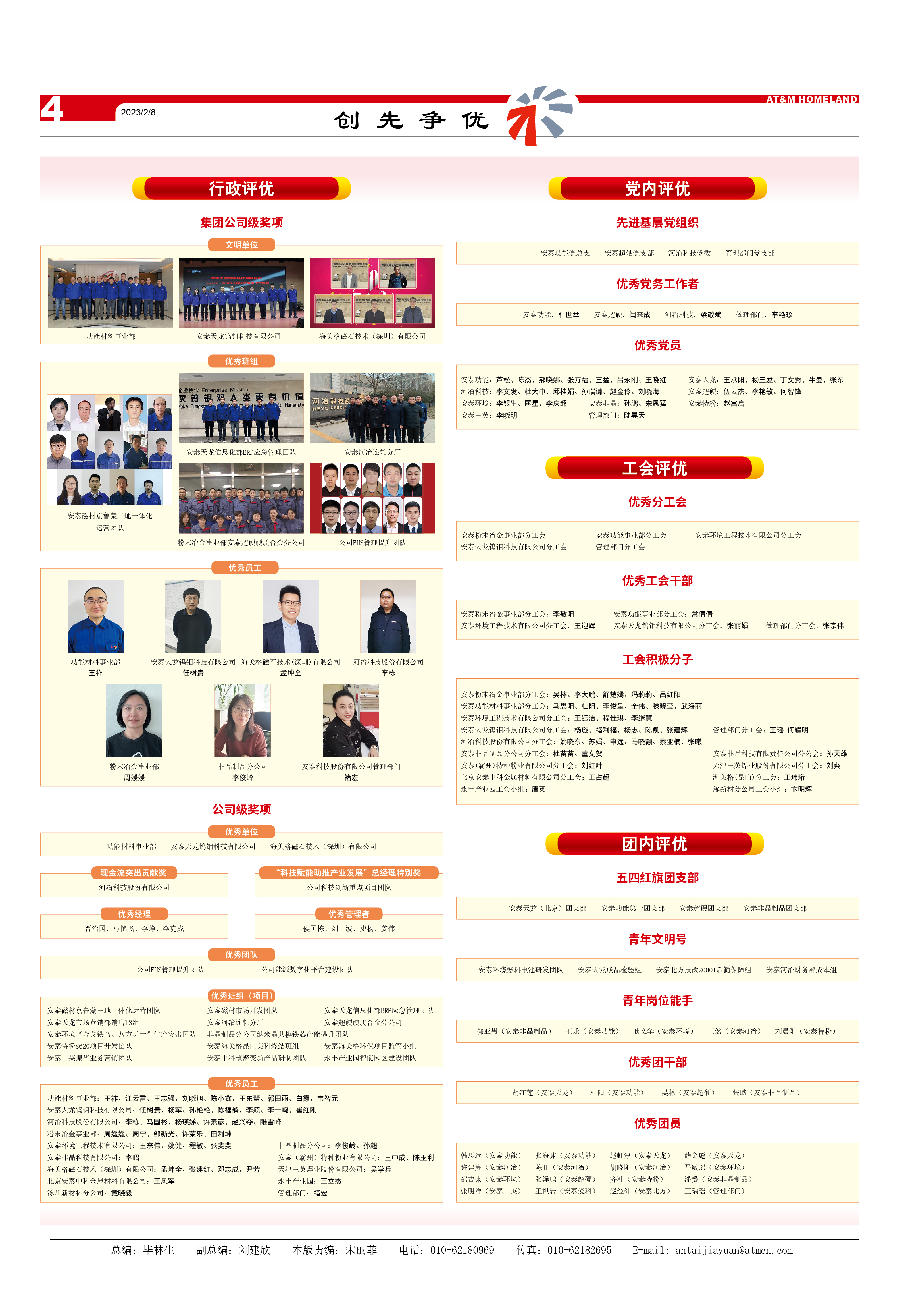 韓思遠(安泰功能)、張海嘯(安泰功能)、趙虹淳(安泰天龍)、薛金彪(安泰天龍)、許建亮(安泰河冶)、陳旺(安泰河冶)、胡曉陽(安泰河冶)、馬敏瑤(安泰環(huán)境)、邵吉來(安泰環(huán)境)、張澤鵬(安泰超硬)、齊沖(安泰特粉)、潘赟(安泰非晶制品)、張明洋(安泰三英)、王祺巖(安泰愛科)、趙經(jīng)緯(安泰北方)、王瑀瑤(管理部門)