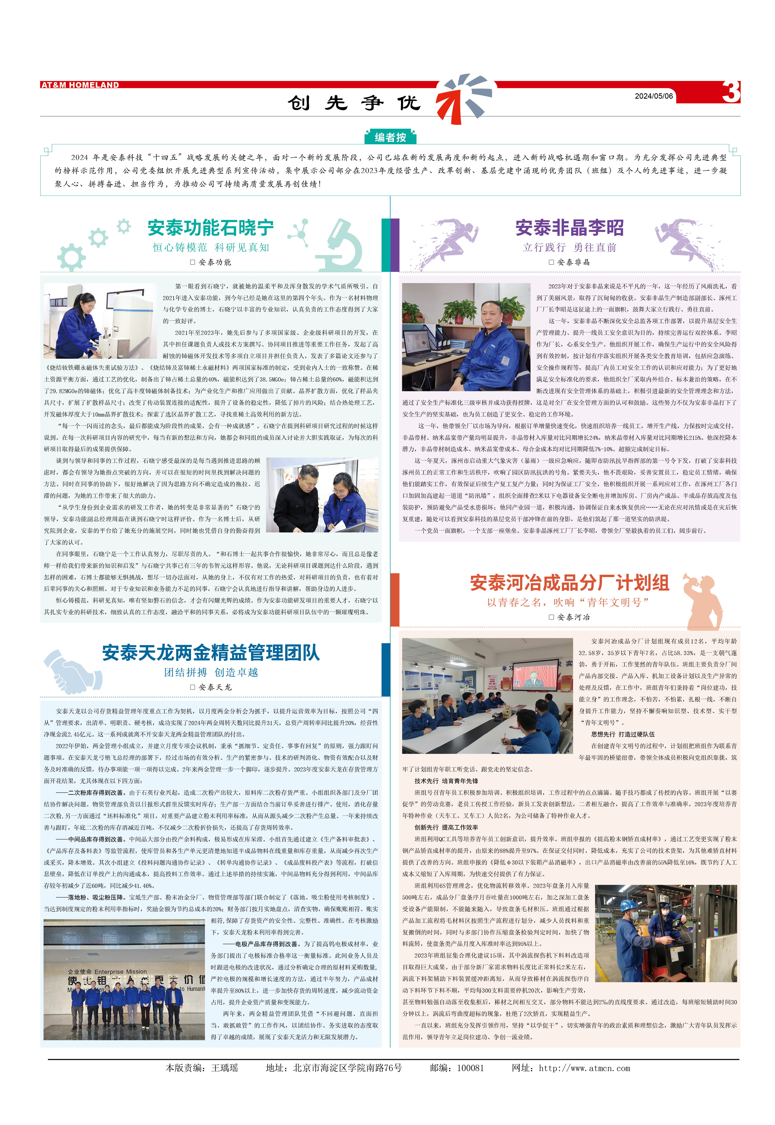 2024 年是安泰科技“十四五”戰(zhàn)略發(fā)展的關(guān)鍵之年,面對一個新的發(fā)展階段,公司已站在新的發(fā)展高度和新的起點,進入新的戰(zhàn)略機遇期和窗口期。為充分發(fā)揮公司先進典型的榜樣示范作用,公司黨委組織開展先進典型系列宣傳活動,集中展示公司部分在2023年度經(jīng)營生產(chǎn)、改革創(chuàng)新、基層黨建中涌現(xiàn)的優(yōu)秀團隊(班組)及個人的先進事跡,進一步凝聚人心、拼搏奮進、擔(dān)當(dāng)作為,為推動公司可持續(xù)高質(zhì)量發(fā)展再創(chuàng)佳績!